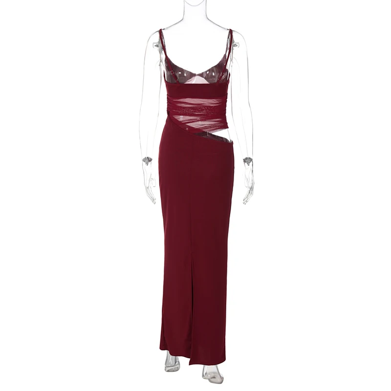DGLUKE Spaghetti Strap Black Mesh Long Dress For Women Backless Cut Out Sexy Beach Party Dress Patchwork Summer Maxi Dress